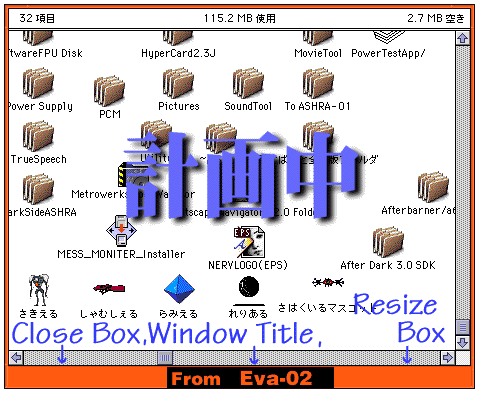 - Macintosh用 スクリーンセーバー。使徒の侵入により、自爆決議を提訴するMAGIを止めることが出来るか!?(13話参考のこと)