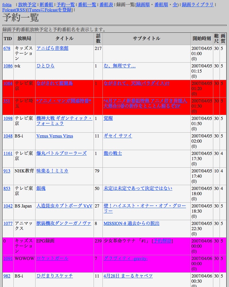 デモ画面:http://www.dcc-jpl.com/soft/foltia/demo/listreserve.php