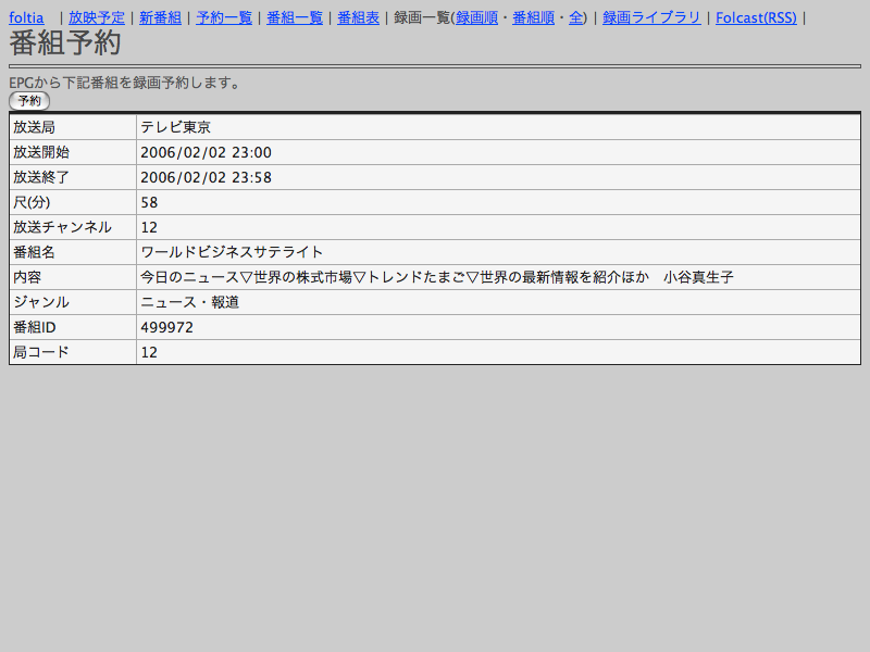デモ画面:http://www.dcc-jpl.com/soft/foltia/demo/listreserve.php