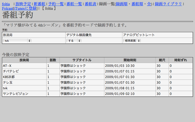 デモ画面:http://www.dcc-jpl.com/soft/foltia/demo/listreserve.php